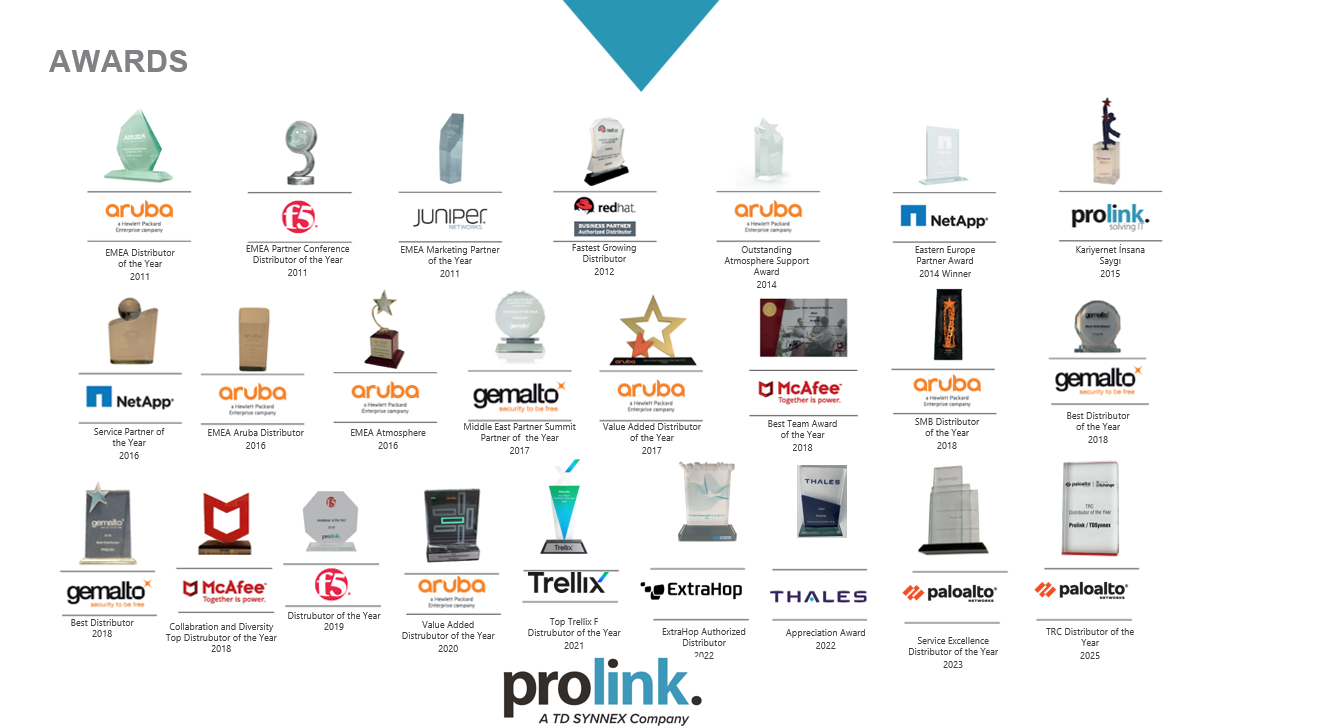 Prolink has been representing many brands from all over the world offering the most advanced technologies since 1997 and is proud of the many awards it has received from its manufacturers during this period.